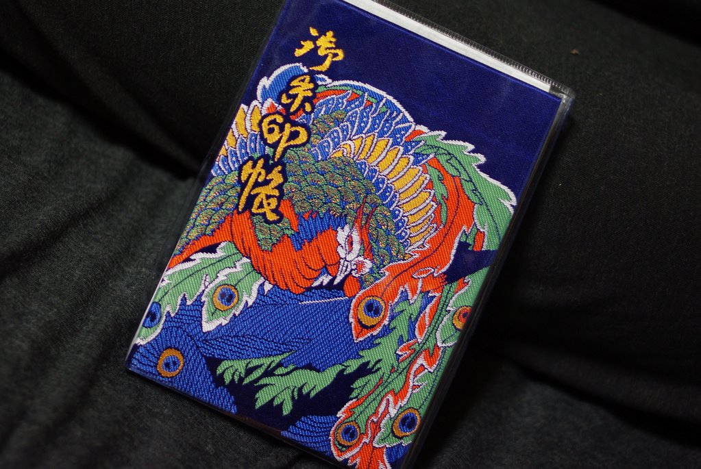 で、今回の連休旅行(後述します)で行ってきた長野は岩松院でついに運命の「お寺で派手な朱印帳」に出会った!ここは北斎のでっかい天井画「八方睨み鳳凰図」が有名なのですが、この鳳凰図を刺繍にした御朱印帳!これが派手で渋くていいのよ。あああ、この良さ分かってもらえるかなあ。。。