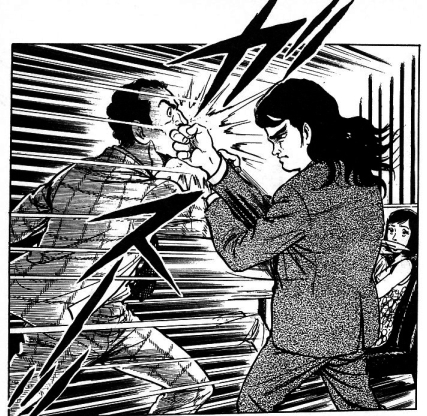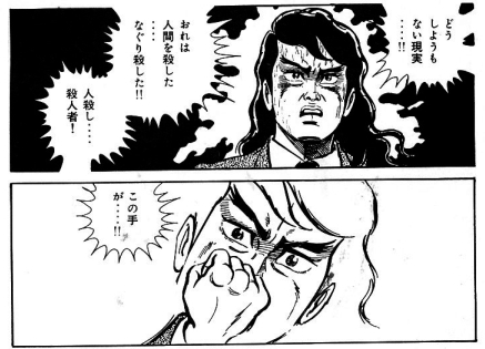 ↑ナイフを持ったヤクザを素手の一撃で殺してしまう瞬間。相手の頭蓋骨は粉砕していたらしい。たいして応戦する気もないのに軽く反射で放った一撃であっさり人を殺してしまうところ、「拳児」に出てきた李書文(八極拳の達人)のエピソードにも似ている。