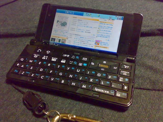 ということで、俗に言うスマートフォンではなく、いわゆる日本のケータイに横長大型液晶と、フルキーボードと、フルブラウザを搭載したモノ。スマートフォンに対する日本なりに回答って言うの?まあ、感激はないけど普通に便利です。日本のケータイは昨今閉鎖的だなんだと文句言われてますが、なんやかんやで日本人に最適化されてるなあ、と言う感じ。